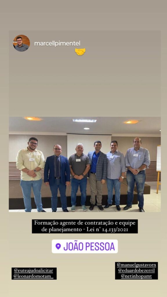Registro do Curso Formação de Agente de Contratação e Equipe de Planejamento – Lei nº 14.133/2021 , ocorrido de 24 a 26 de abril, no Hotel Atlântico Praia, em João Pessoa – PB, juntamente com o professor Abimael Torcate.